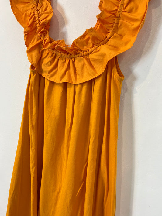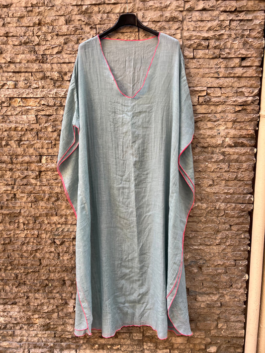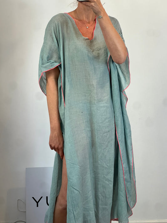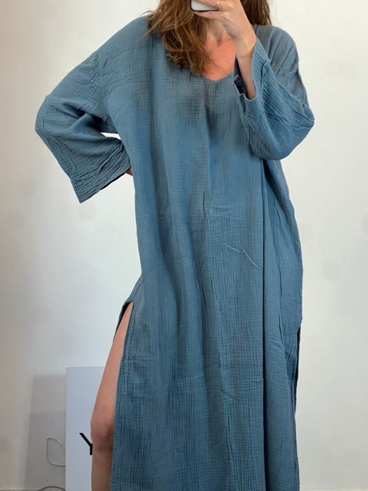 MARIA DE LA ORDEN. Vestido largo azul fruncidos