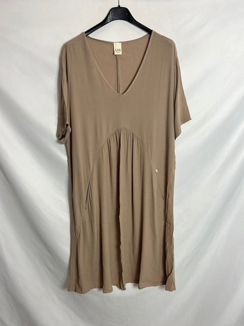 VICTORIA COLECCIÓN. Vestido rosa empolvado y gris