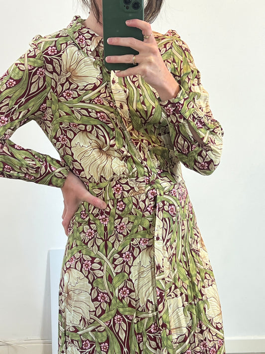 JOSEPHINE. Vestido midi estampado detalles en terciopelo