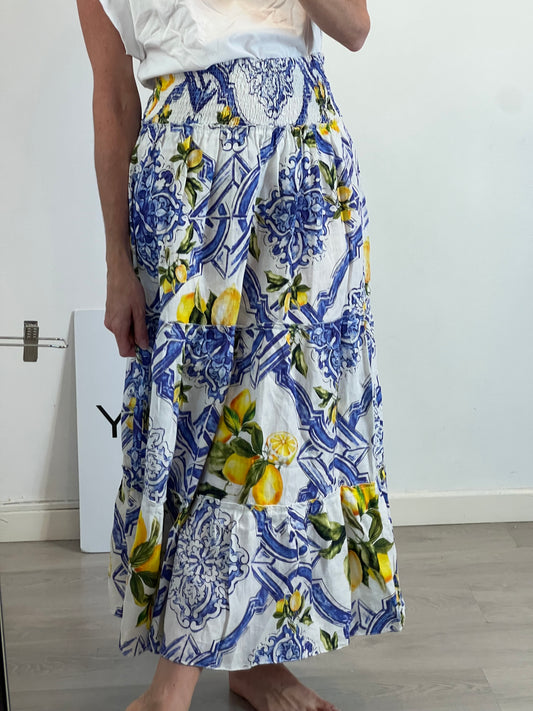 SARTORIA SARANCENA. Falda lino limones. TU (XS)