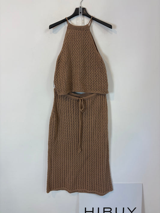 MASSIMO DUTTI. Falda midi mezcla color tostado. T XS( S)
