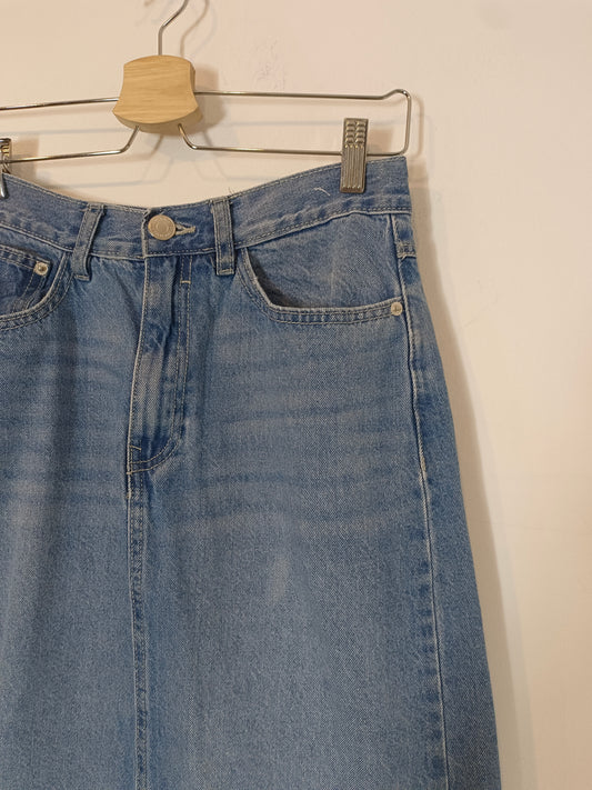 INTROPIA. Falda midi fluida efecto desgastado. T M