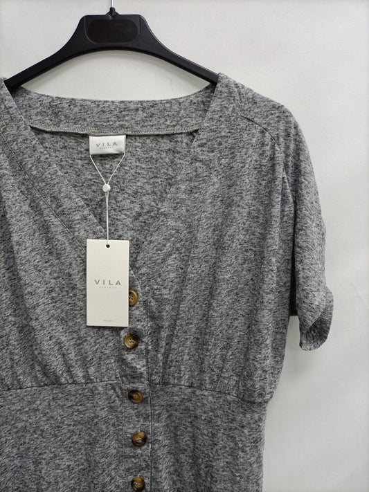 ZARA. Vestido gris canale mangas abullonadas T.L