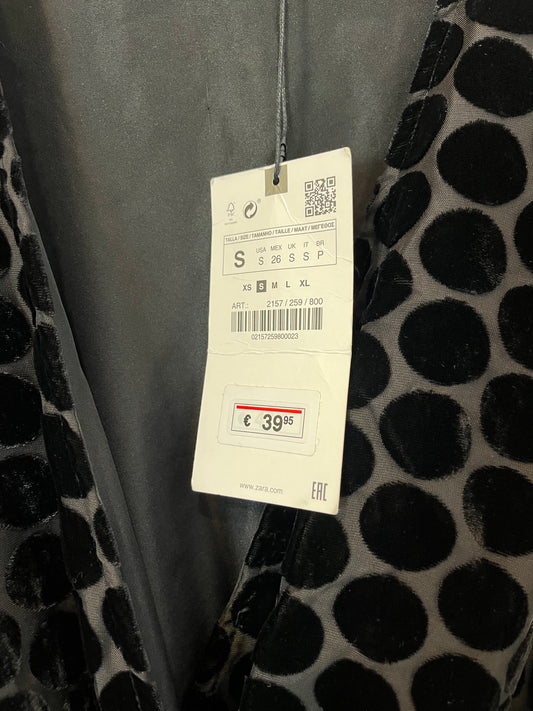 ZARA. Vestido negro con terciopelo fruncidos. T S