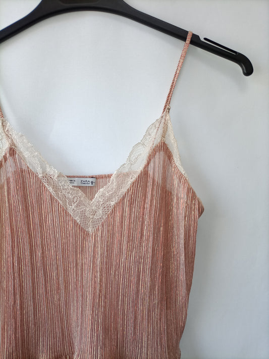 MANGO. Vestido corto azul electrico cintura fruncida T.s
