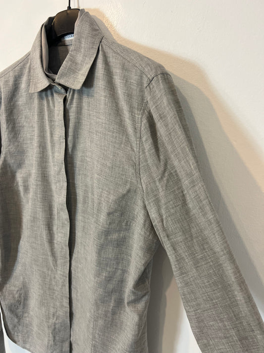 BRUNELLO CUCINELLI. Camisa gris doble capa seda. T M