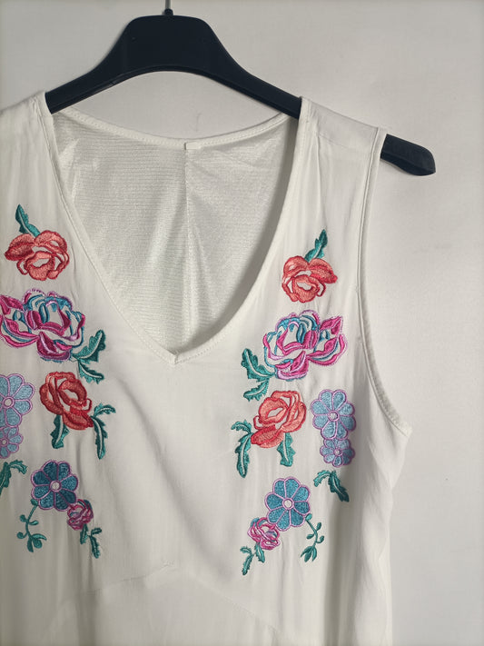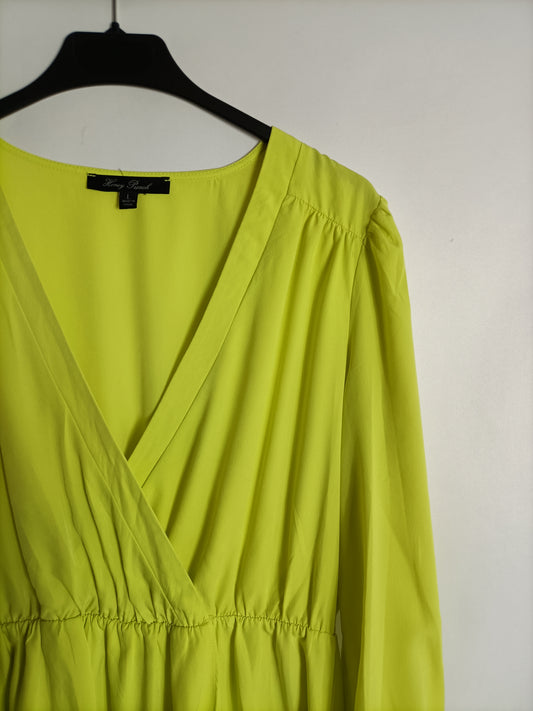 MAGALI PASCAL. Blusa beige semitransparente hilos dorados. T S