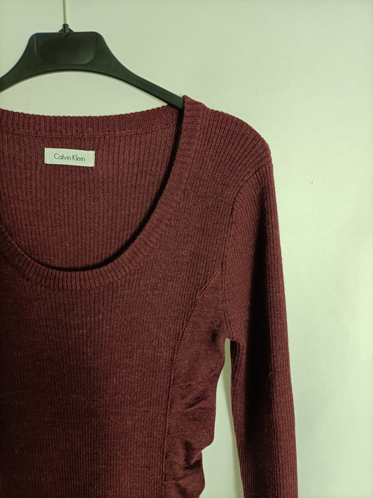 AMEN. Vestido paño negro detalles escote. T 40 (34)