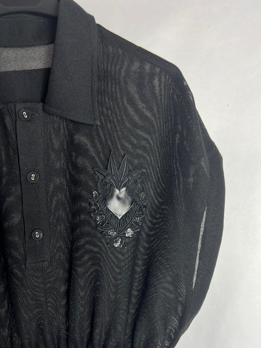MAGALI PASCAL. Blusa negra semitransparente hilos plateados. T S