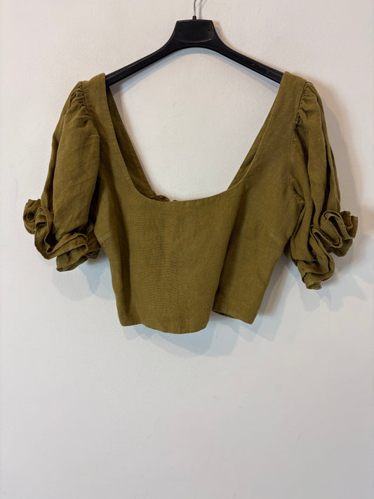 ADOLFO DOMIMGUEZ. Top y chaqueta lino beiges. T S