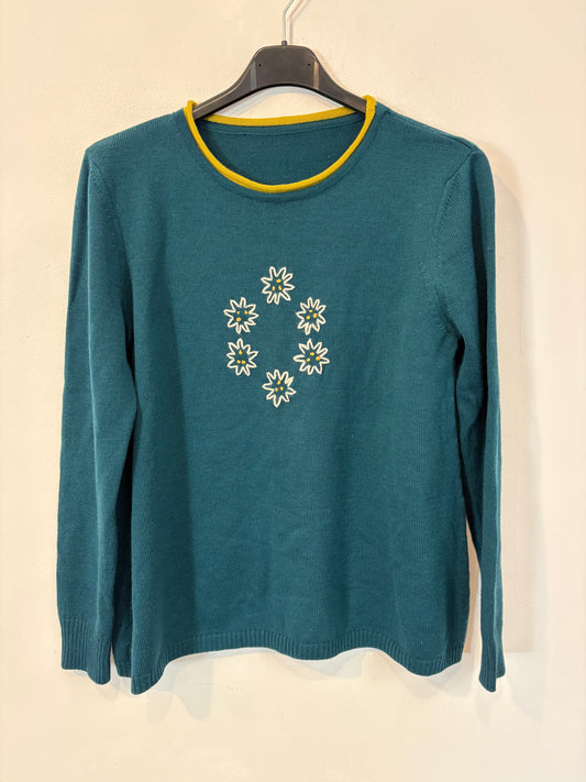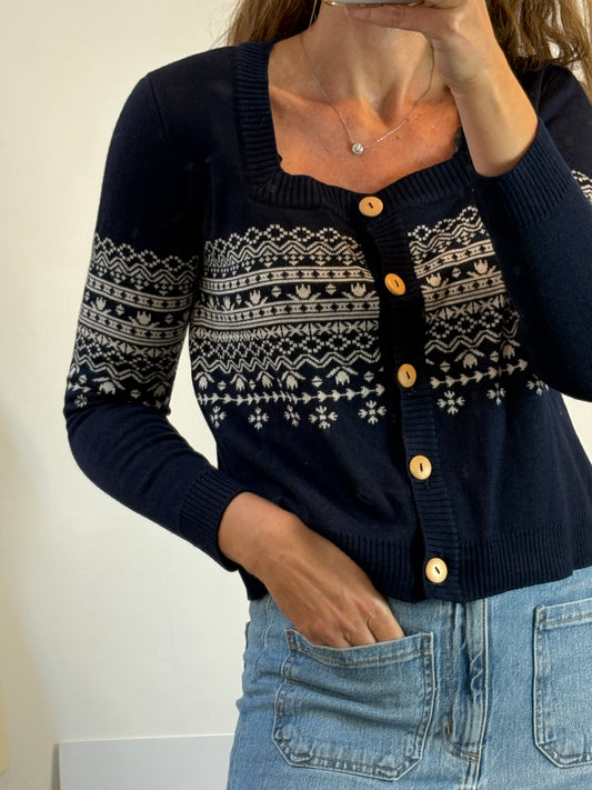 LA CASITA DE WENDY. Jersey azul merino bordados
