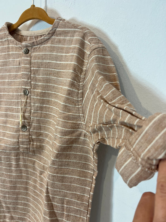 ZARA. Camisa lino rayas color tostado. T 4-5 años