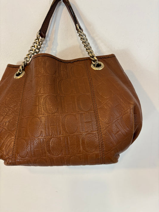 CAROLINA HERRERA. Bolso marrón piel asa regulable