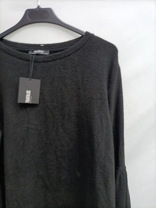 STRADIVARIUS. jersey negro jaspeado volantes T.m