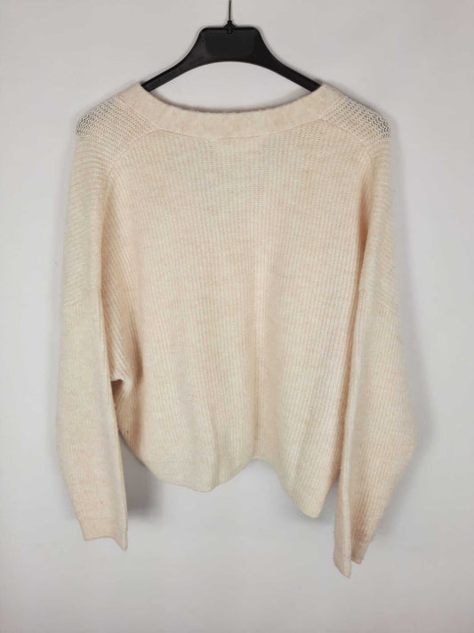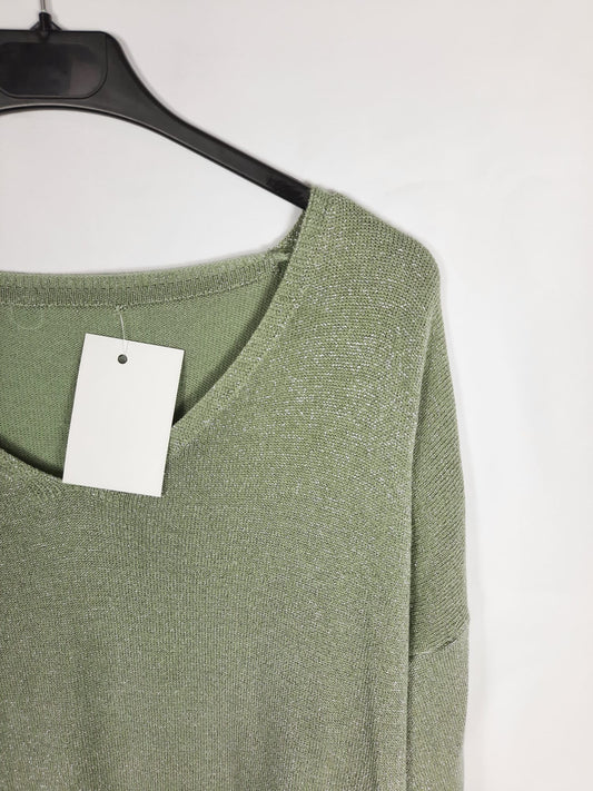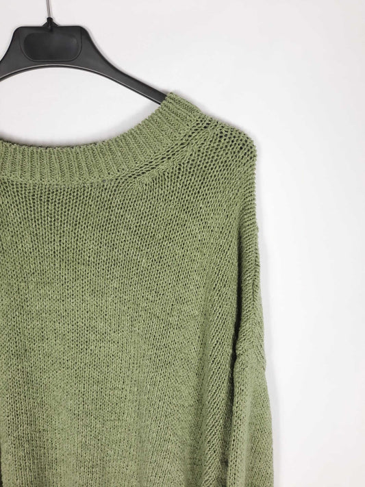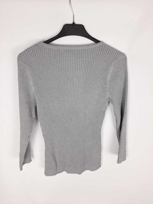 STRADIVARIUS. Jersey gris oscuro delantero volantes T.l