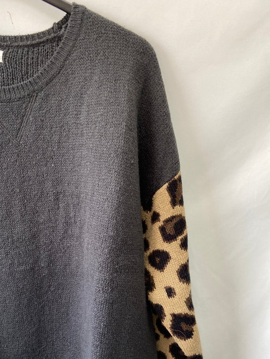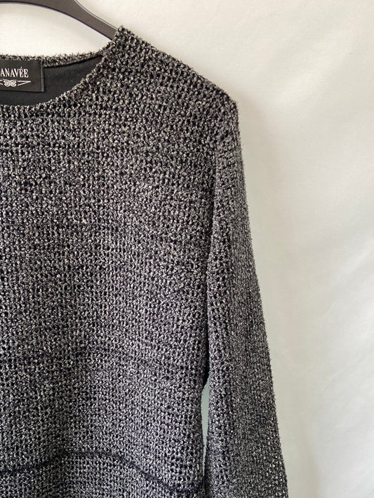 ZARA. Jersey/top negro doble textura con mangas estampadas flores T. m