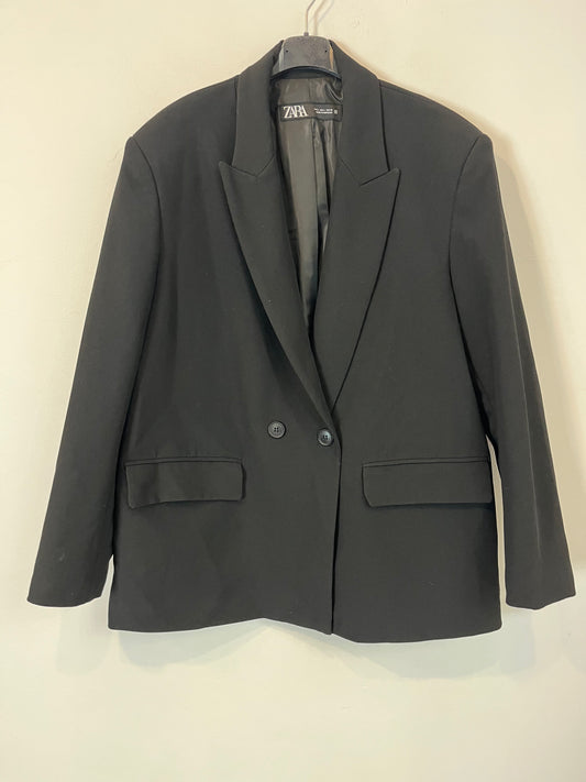 ZARA. Chaqueta negra textura detalle botones. T XS