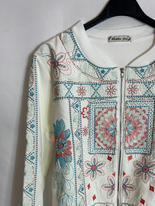 JAVIER SIMORRA. Chaqueta piel marrón cremallera. T 38 (tara)