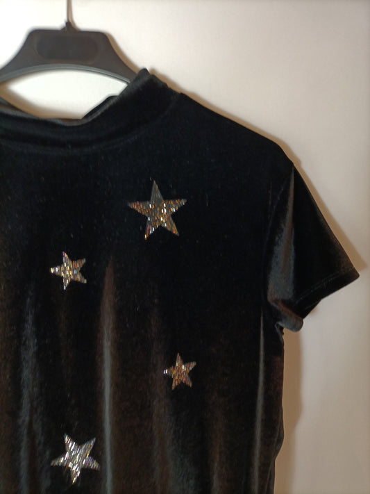 ZARA. Top terciopelo negro estrellas. T 13-14 años (XS)