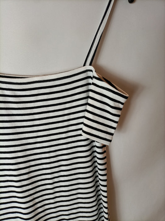 TWIN-SET. Jersey canalé rayas blancas y negras. T L