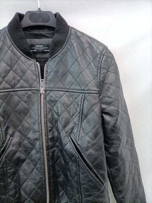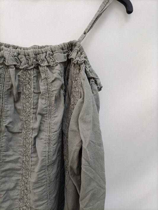 ZARA. Vestido palabra de honor negro con volantes en escote ajustado T.s