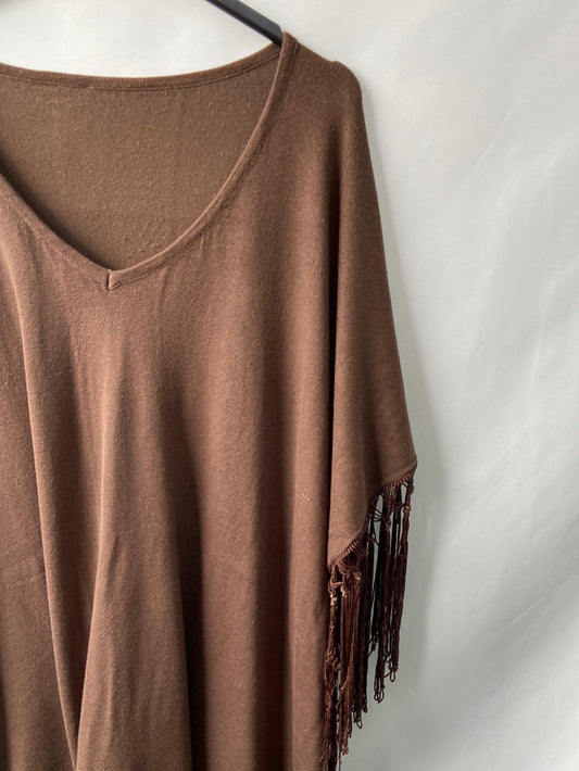 OTRAS.Jersey/vestido oversized marrón flecos TU(m/l)