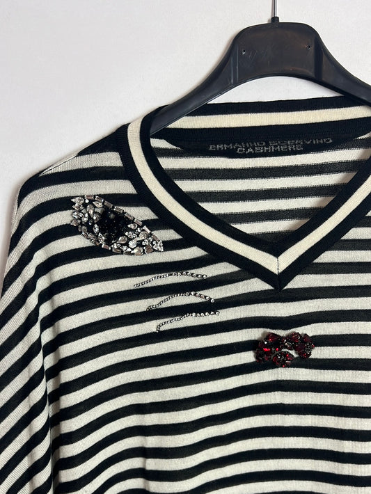 ERMANNO SCERVINO. Jersey rayas cashmere detalles. T S