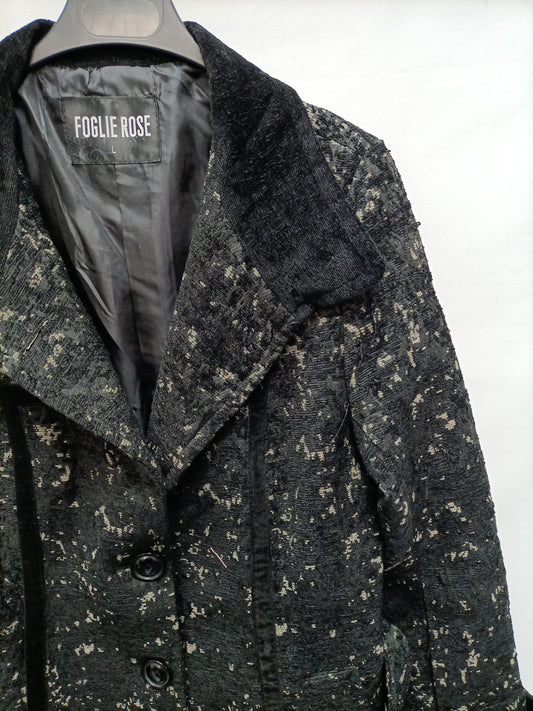 ROSA ROJAS. Total look falda chaqueta verde estampado hojas T.40