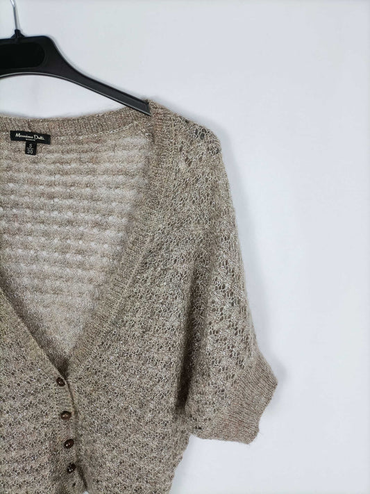 MASSIMO DUTTI. Cardigan de punto fino beige con hilos plateados T s