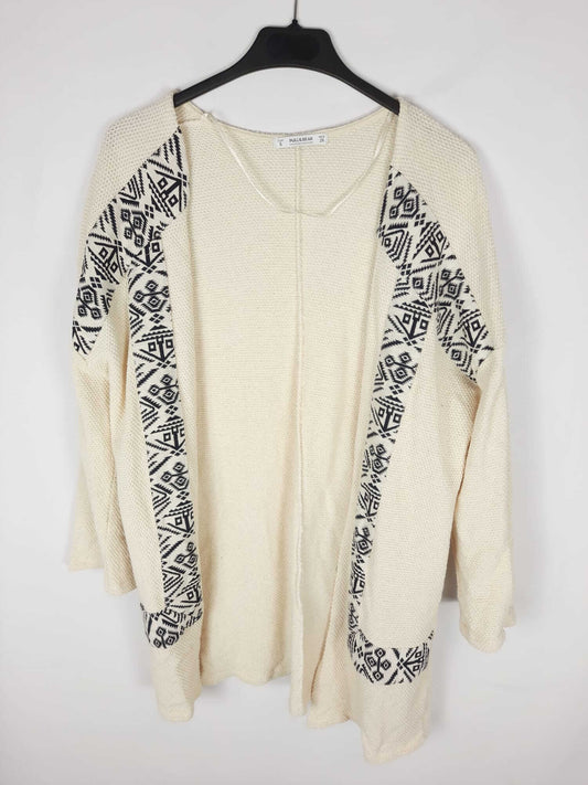 PULL&BEAR. Chaqueta beige fluida con toques étnicos T.s