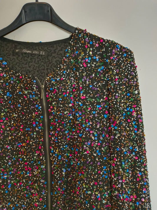 ZARA. Chaqueta manga corta colores fucsia. T S