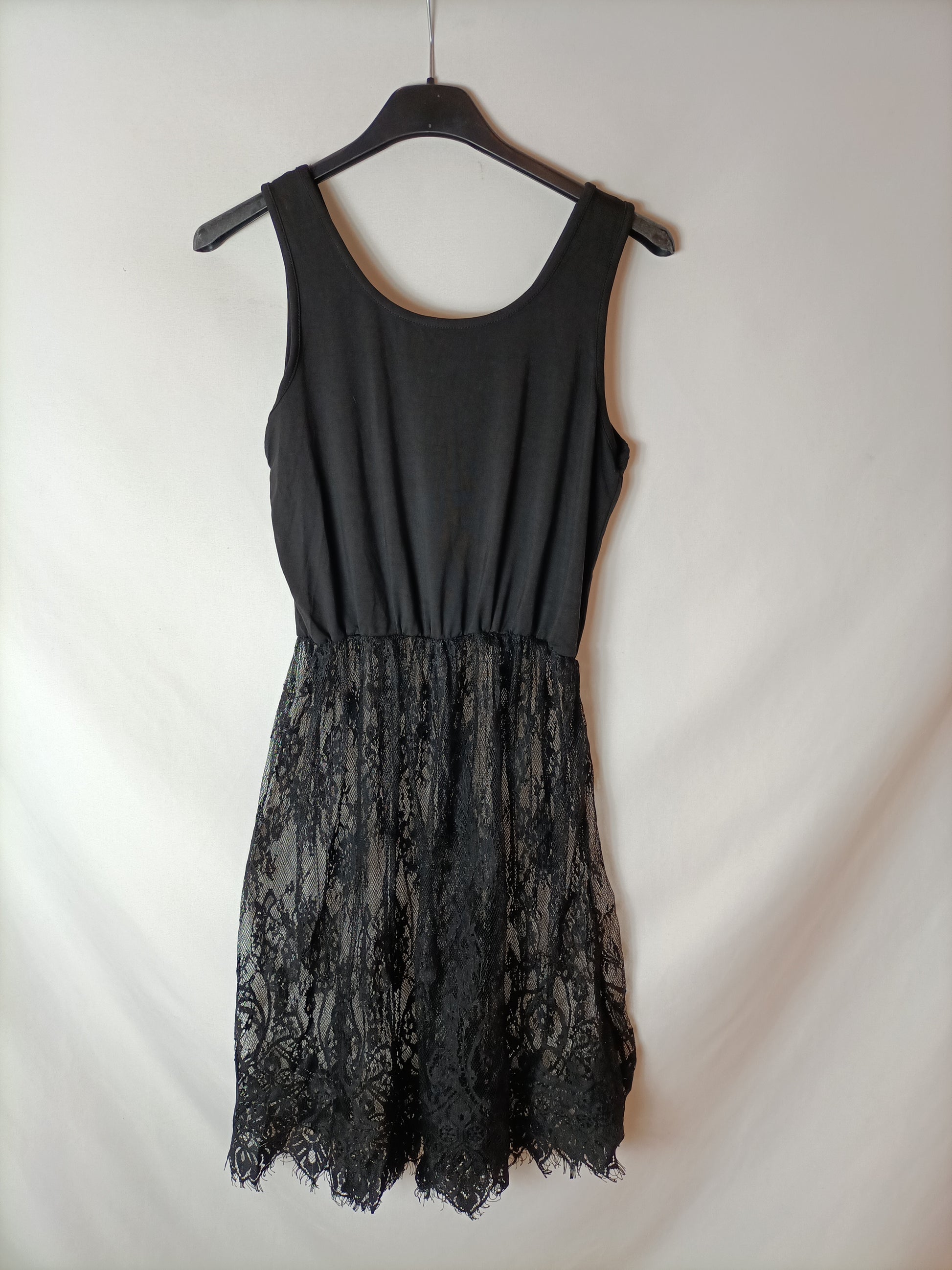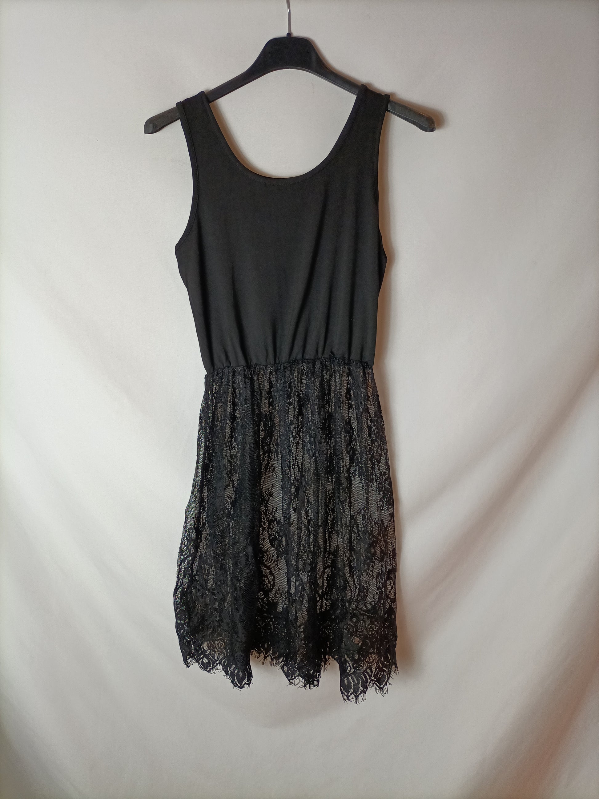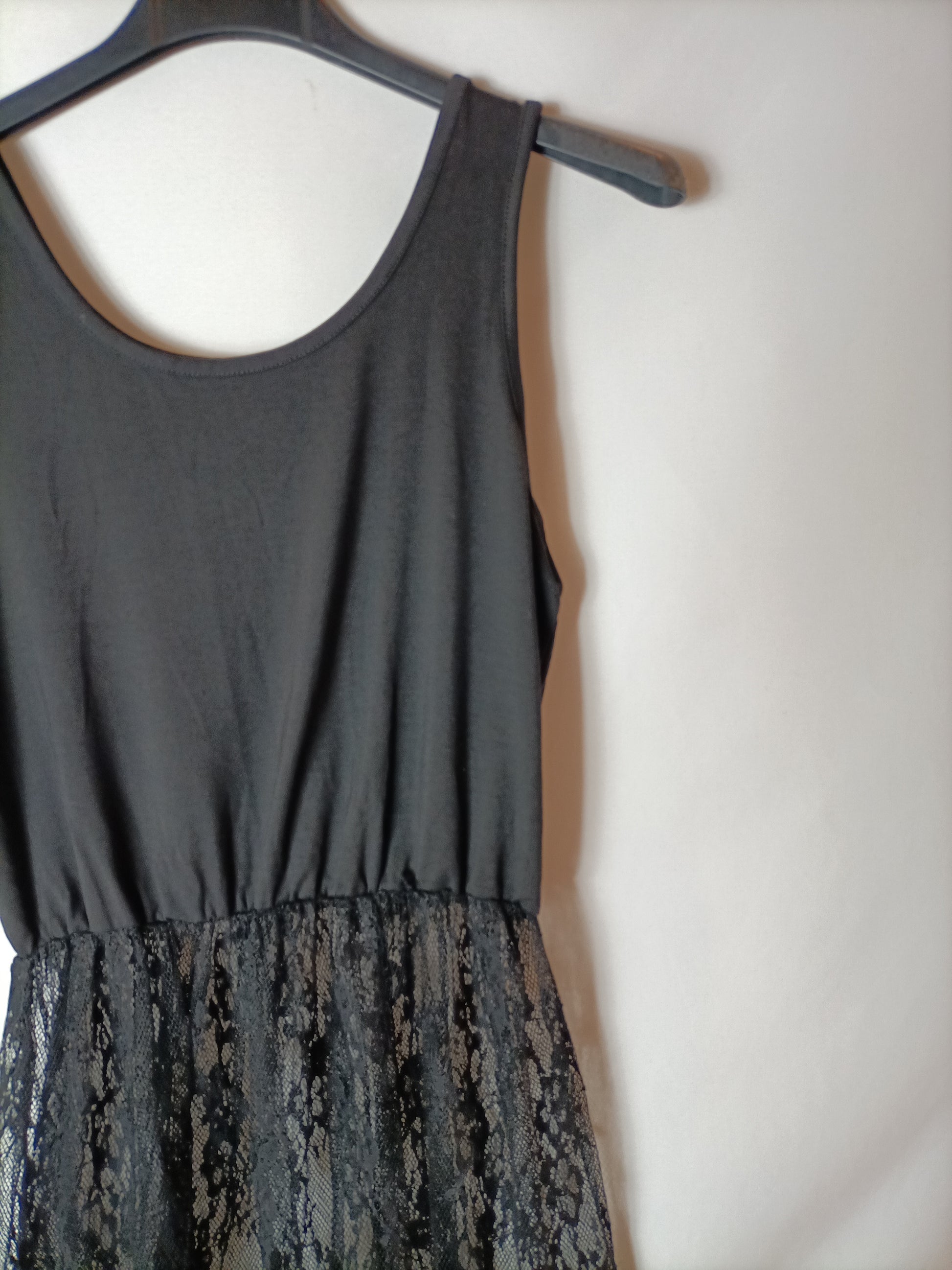 top largo negro con la parte de abajo de encaje negro semitransparente. Parte de arriba elástica.