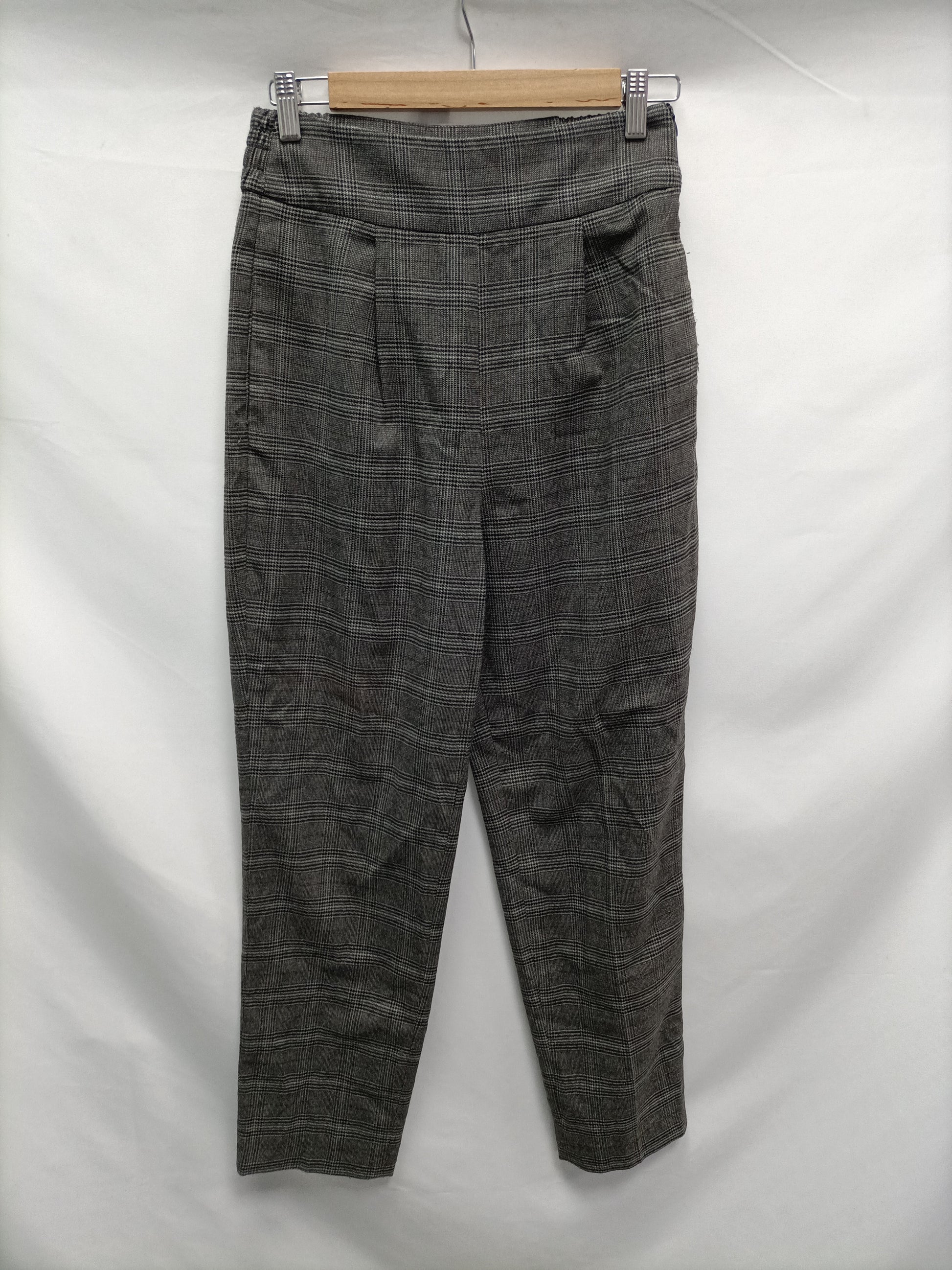 Pantalones grises de cuadros. Tiro alto con cintura elástica con cremallera en el lateral. Cintura 34 cm largo 102 cm