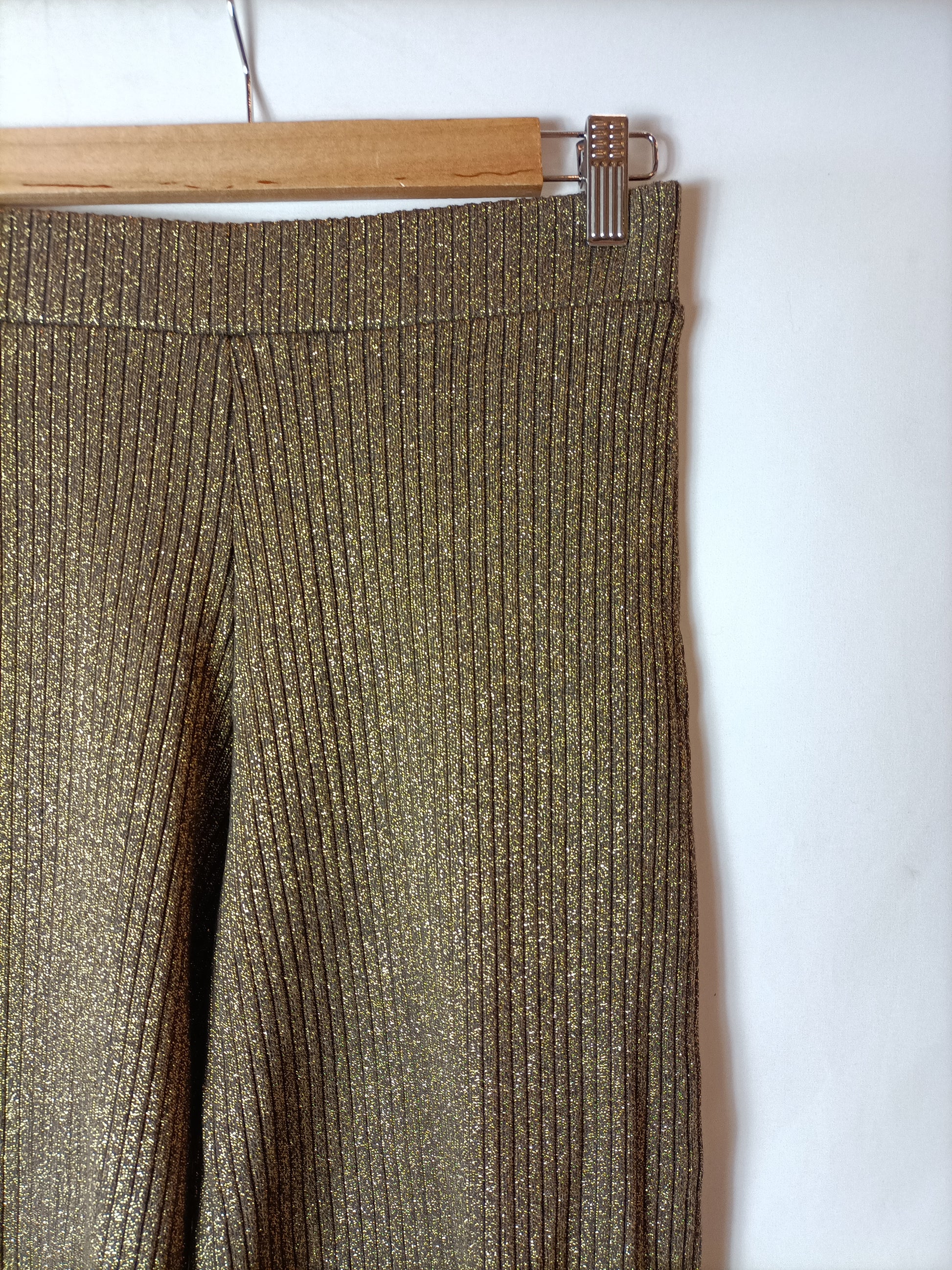 Pantalón estilo culotte de punto de canalé dorado.