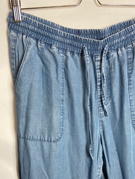 ZARA. Pantalón textura rayas azules y blancas. T M