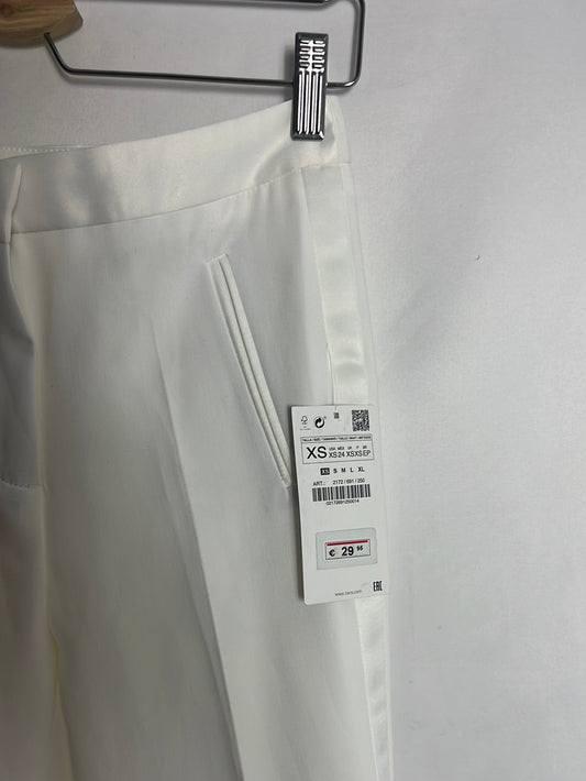 ZARA. Pantalones blancos pinzas líneas laterales. T XS