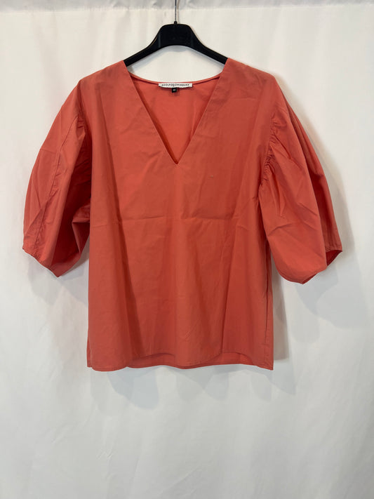 ADOLFO DOMINGUEZ. Blusa mangas abullonadas coral. T 40