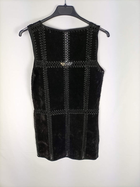 SILVIAN HEACH.Pantalones negros rayas monocolor T.38