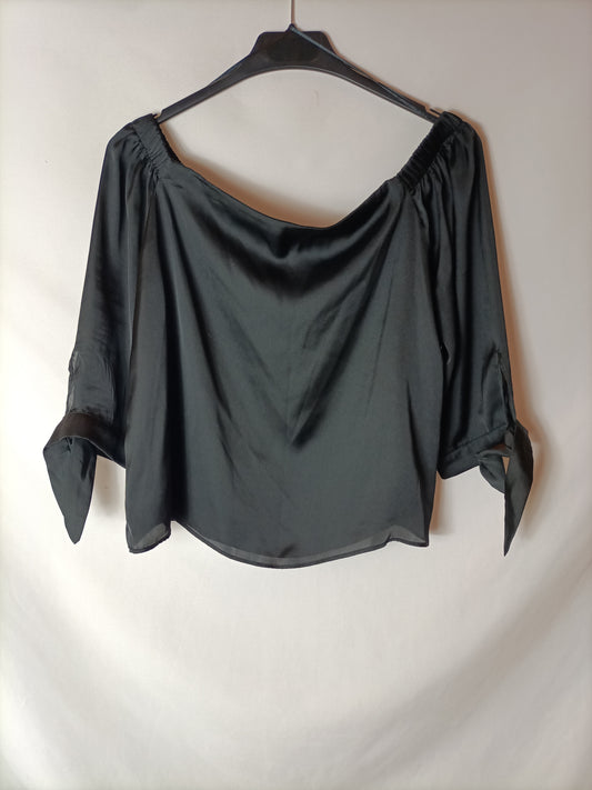 SFERA. Blusa blanca semitransparente lazada cuello. T M
