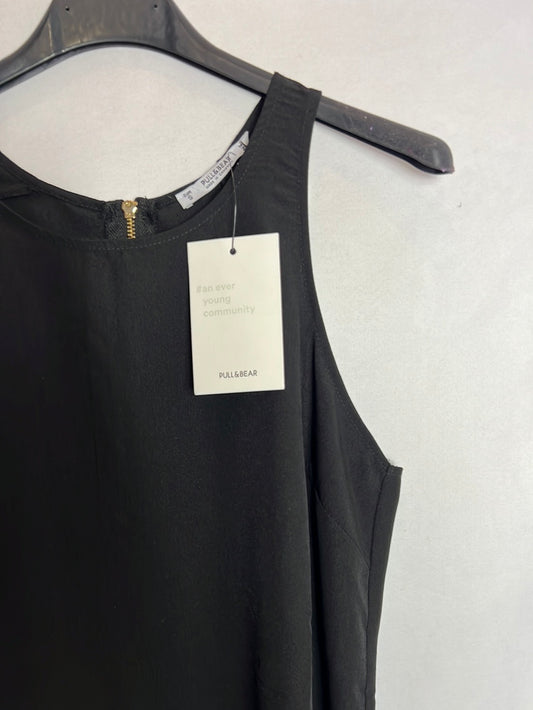 BERSHKA. Vestido amarillo textura con pantalón corto. T M