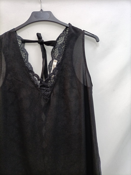 DISSH.Vestido largo marrón abertura espalda T.M