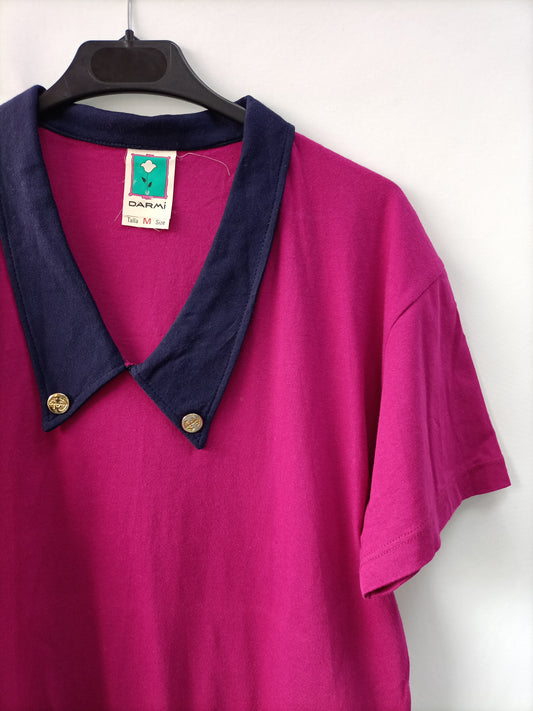 MASSIMO DUTTI.Camiseta elástica azul pedrería T.L