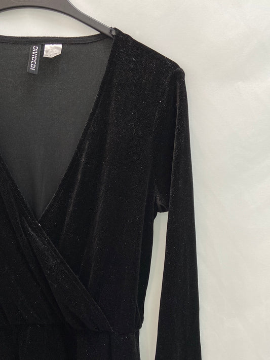 STRADIVARIUS. vestido negro estampado hilos plateados T.s