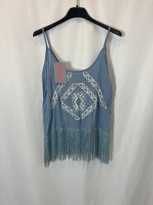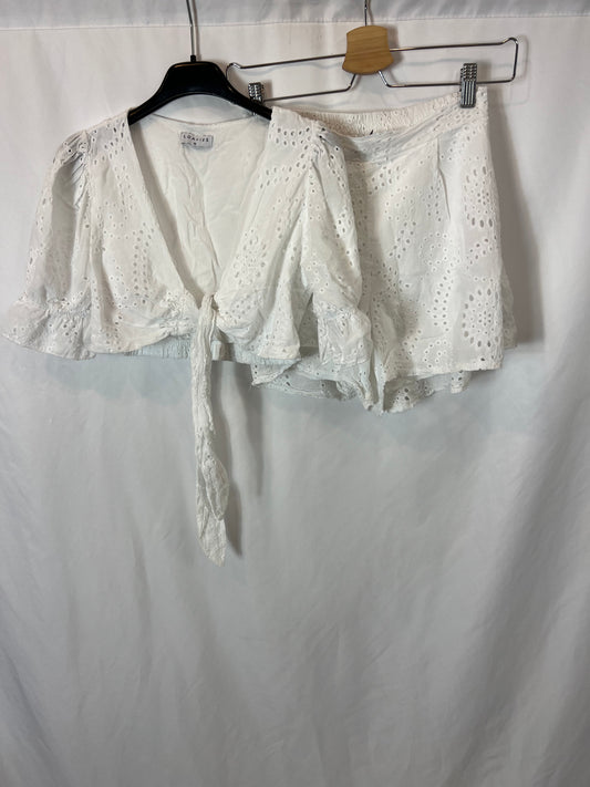 MAY BY SINING START. Top blanco canalé volantes T.u(s)