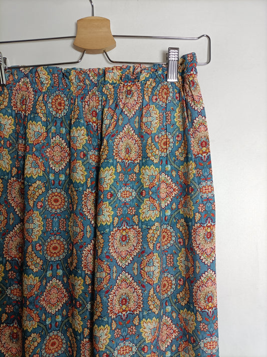 BLUNAUTA. Vestido midi seda negro estampado. T 40