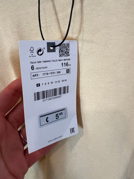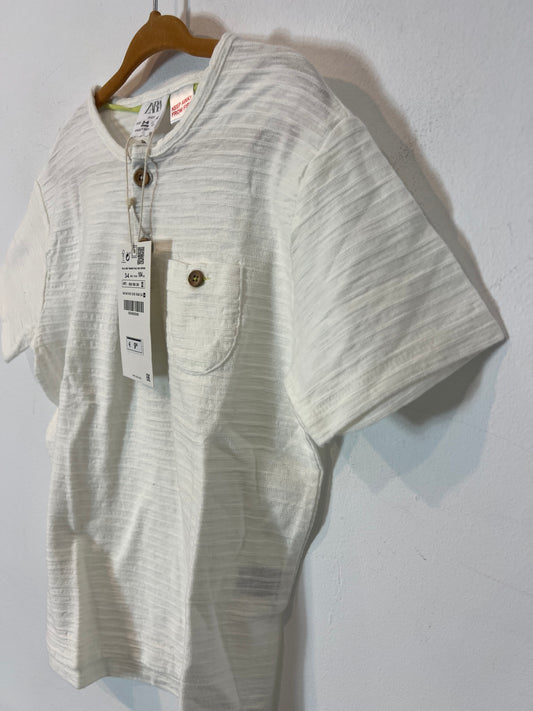 H&M. Camisa lino color crudo cuello mao. T 5-6 años