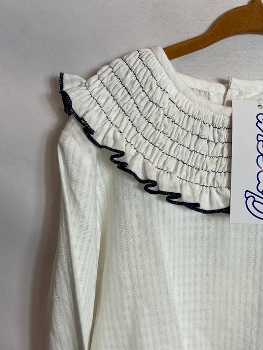 ANCAR. Camisa blanca volante engomado azul oscuro