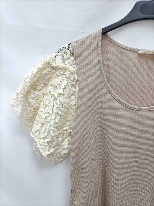 MANGO.Camiseta beige oversized cuello perkins T.m