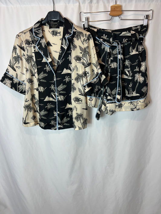 JAVIER OROQUIETA. Total look falda y top lino estampado. T 40 (tara)