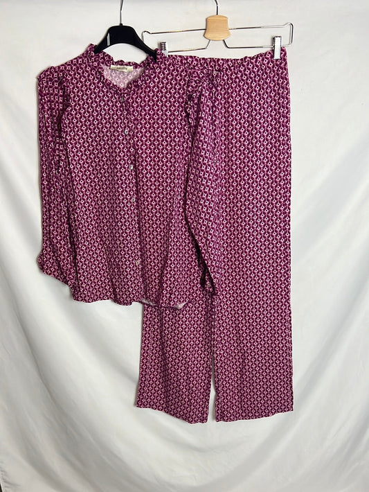 BABILONIA. Total look Blusa y pantalón estampada estilo vintage. T M
